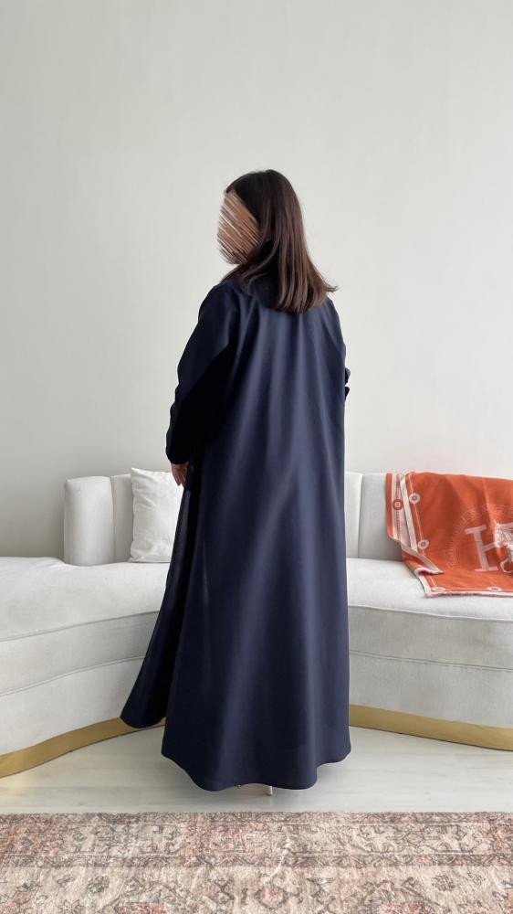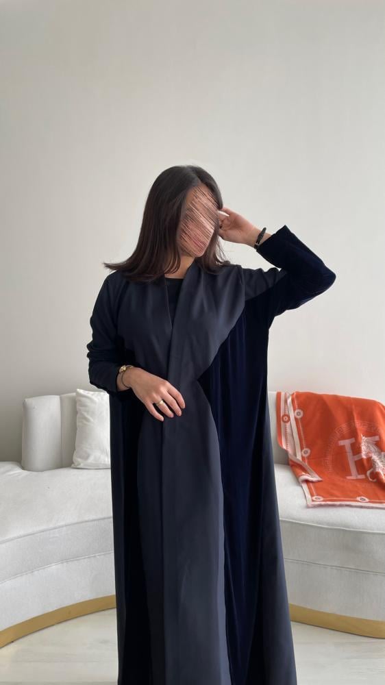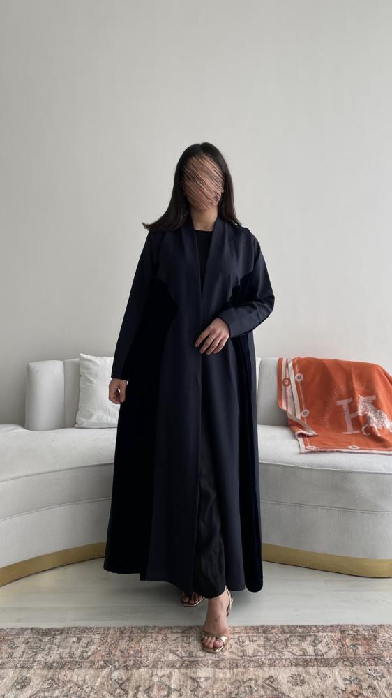 عبايه قصه نص كلوش كريب كتان ومخمل 1013