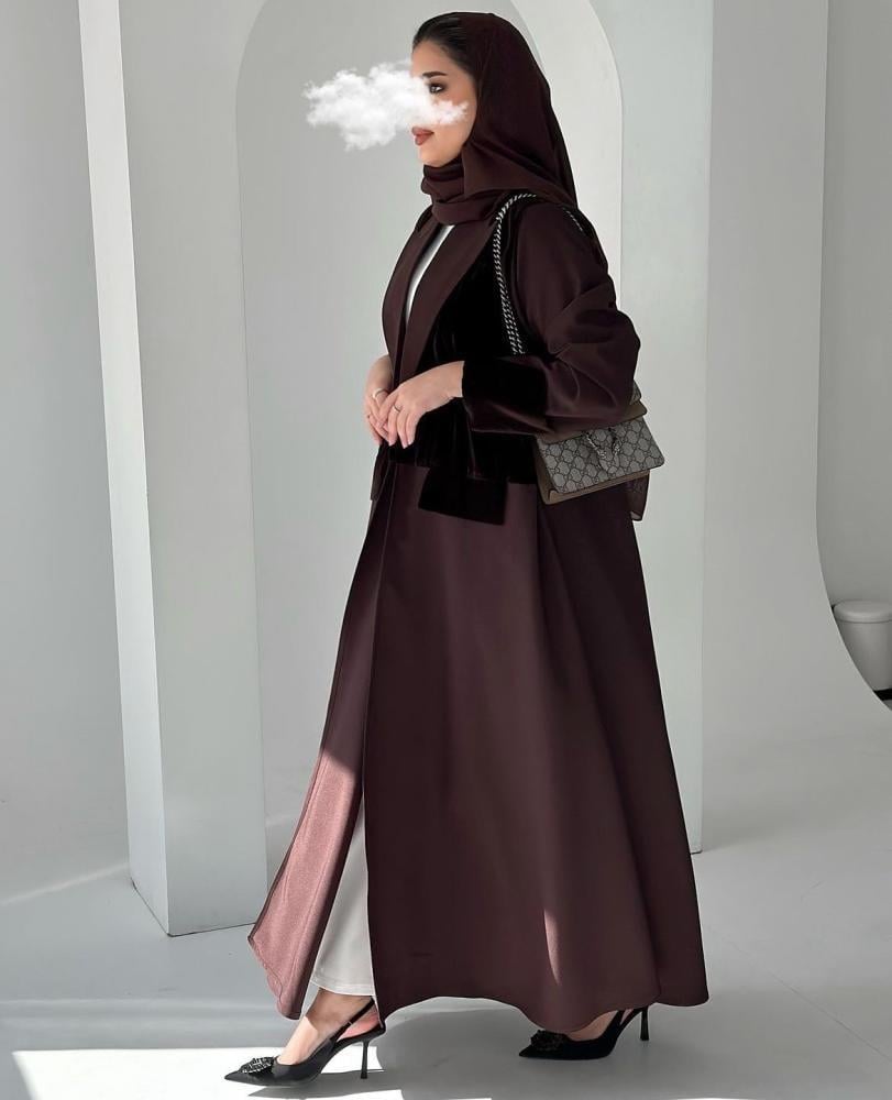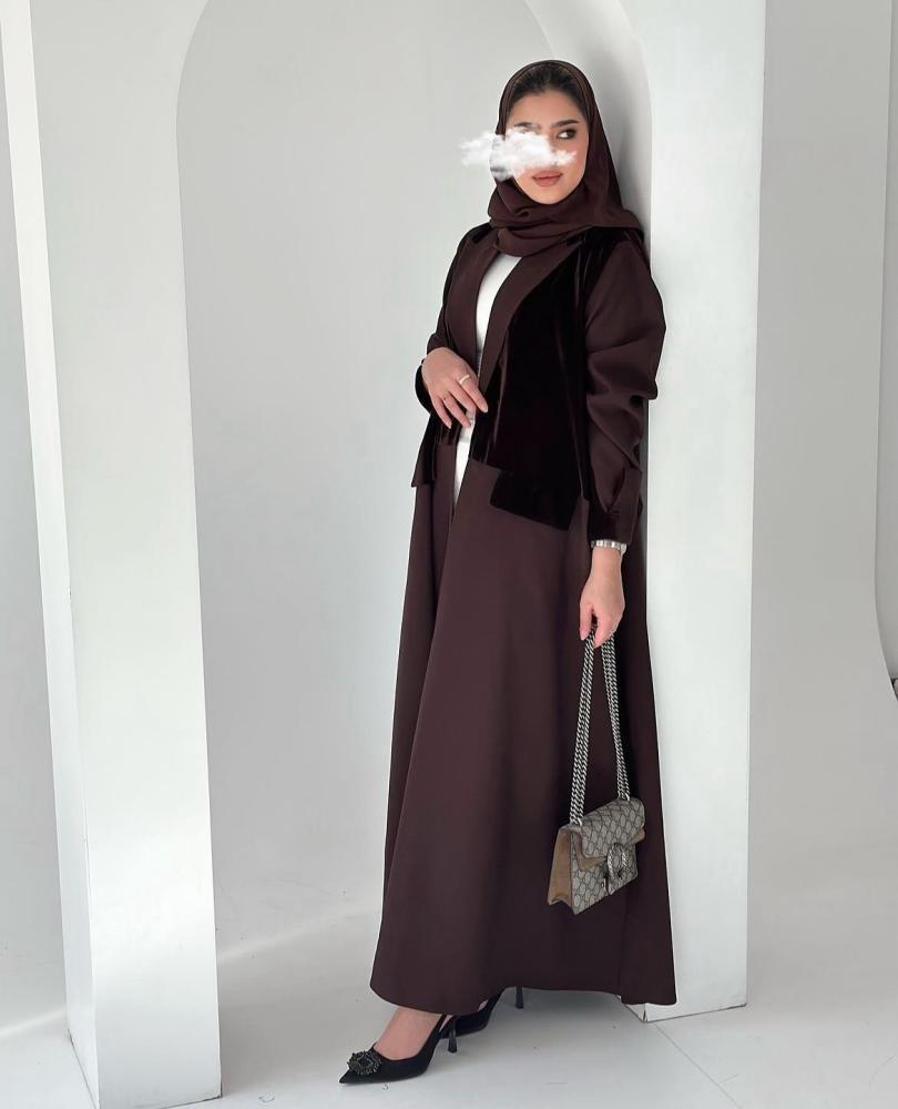 عبايه كريب & مخمل بني 1099